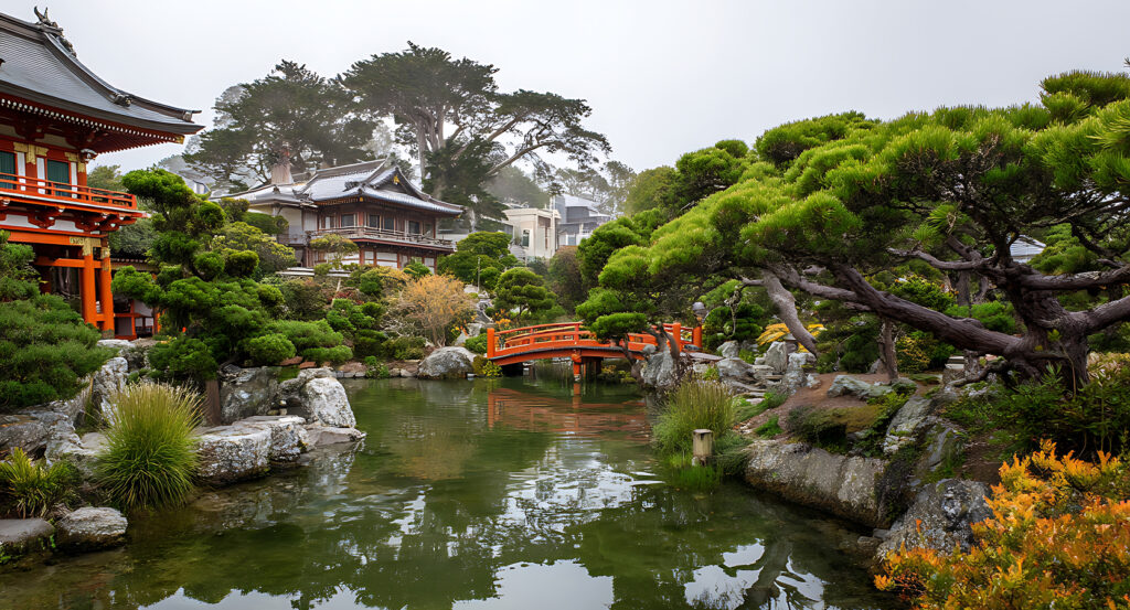 Approach from the main pond, where the bridge reveals its full reflection, best seen in the calm of morning light. Cross slowly, noticing how your balance shifts with the curve beneath your feet, each step feeling like part of an ancient ritual. Afterward, linger nearby at the base of the bridge to watch its image ripple in the water as koi drift below and cherry blossoms fall from above. For photographers, this is one of the garden's most timeless vantage points; for travelers seeking quiet, it's a place to pause and absorb the energy of design meeting nature. From here, follow the path toward the Tea House or the Five-Story Pagoda, but remember: no matter where you go, the Drum Bridge remains the garden's heartbeat, a wooden echo of Japan's artistry, grace, and stillness, thriving in the heart of San Francisco.