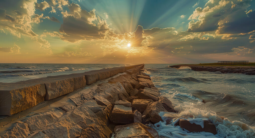 The Galveston Seawall is Houston's coastal escape, a sweeping 10-mile promenade where ocean air, salt spray, and endless horizon converge.