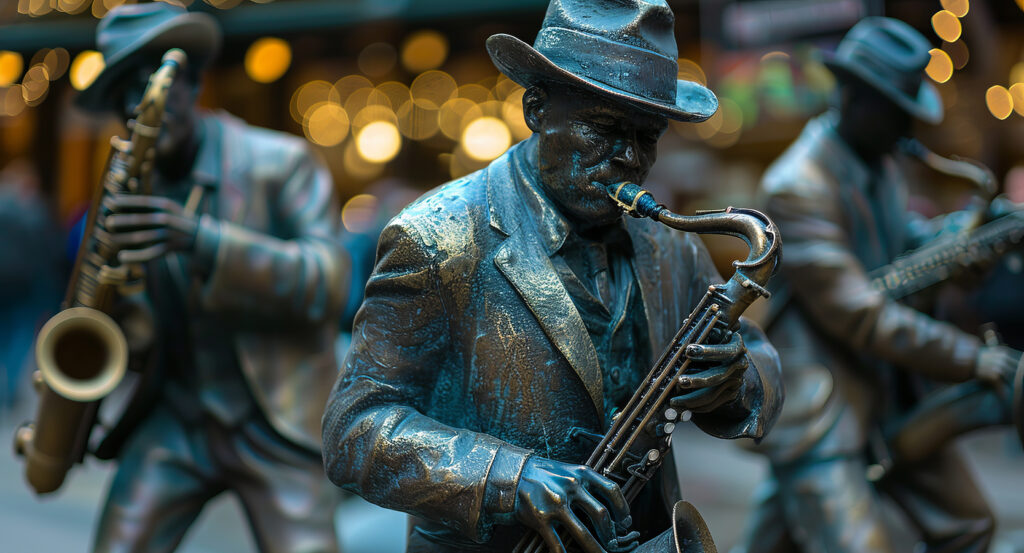 “Statues, fountains, and a giant arch that looks like it was made for late-night saxophone solos. The spirit of jazz hums in every corner.”