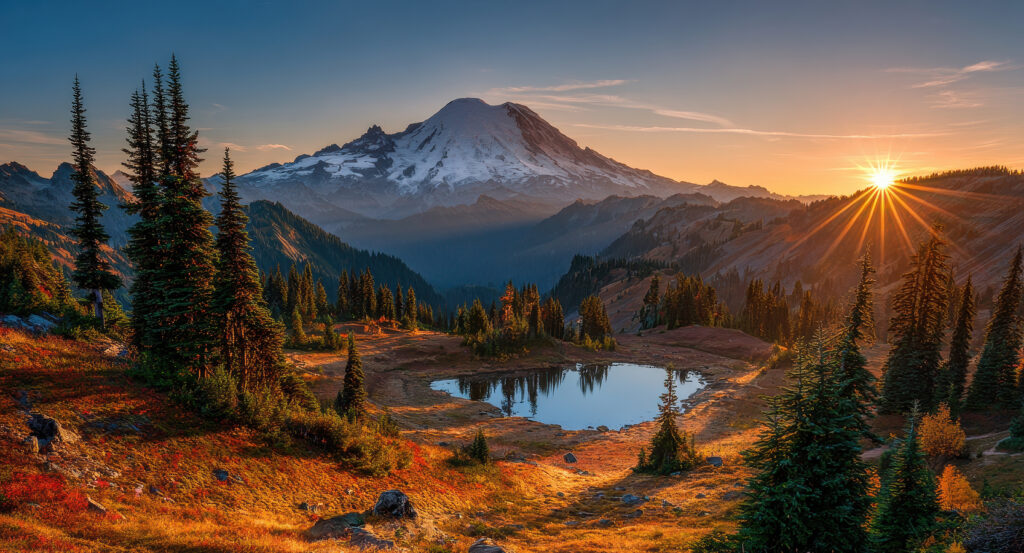 Mount Rainier National Park is the crown jewel of Washington State, a place where the sheer scale of nature humbles you into silence. You should visit because this is not just a mountain, it's a 14,410-foot volcano wrapped in glaciers, alpine meadows, and old-growth forests, a destination that redefines the word “majestic.” Standing at the base of Rainier, you'll feel the mountain's immensity radiating through every pine-scented breeze and mirrored reflection on icy lakes.